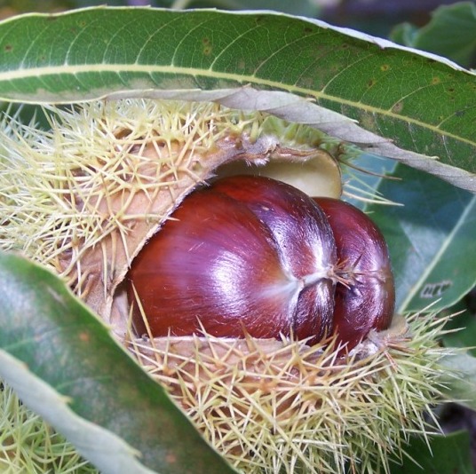 The edible chestnut - Castanea sativa - usually referred to as the Spanish or sweet chestnut, is a native of mountainous regions of Western Asia, North Africa and Southern Europe. The earliest record of chestnut cultivation is in Theophrastus' Enquiry into Plants, written in the 3rd century BC. However, pollen analysis from Insubria, the lakes area on the modern day Swiss-Italian border, shows Castanea sativa to be present from 10,000 ago onwards. During Roman times, chestnut cultivation took place in Insubria. The Romans are thought to have introduced the chestnut to Northern Europe, including Britain.
