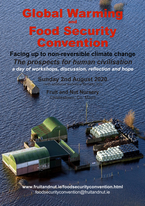This unique event will examine the options for preparing for catastrophic or near-catastrophic climate change. Attention will be drawn to the unavoidable consequences of anthropogenic greenhouse gas emissions that are already resident in the earth's atmosphere - or that will be in the near future - and on the various non-reversable feedbacks that are now being triggered (deep blue is the colour of the ice-free Arctic ocean when seen from space). The convention takes it as a given that global warming will have very serious impacts upon human civilisation. The discussion will not concern itself with emissions reductions or strategies for achieving these but will examine future global warming scenarios and the likely adaptations required at community level, particular in terms of food security. Ireland Ireland is very poorly prepared for climate change. It currently imports 75-80 percent of all food consumed and much of this food originates in countries that will be impacted upon negatively by climate change. The Irish agriculture sector, which is primarily focused on livestock production for the export market, imports 3 million tonnes of animal feed and 1.3 million tonnes of fertiliser every year. It is highly vulnerable to disruptions in global supply chains, including climate change impacts on the countries producing the animal feed. In terms of food security, it is absolutely essential that Ireland acquires the skills, knowledge and ability to produce much more of the food it requires. Gender roles It is acknowledged that the countries in which female representation in political decision making processes is highest (for example the Nordic countries) are also the same countries that prioritise care for the environment. Conversely, the countries where the proportion of women in politics is lowest (for example the United States and Australia) are also the countries where climate change mitigation proposals are routinely obstructed by corporate and other vested interests. Are the alpha males who typically fill positions of power incapable of roles involving stewardship of the earth's resources or empathy with the wider biosphere? It certainly looks like it. According to Donald Trump, the president of the United States and also the poster child for alpha male aggression, global warming is a 'hoax'. Meanwhile, back on planet Earth, fourteen of the fifteen hottest years ever recorded have been in the last fifteen years, and the carbon dioxide concentration in the atmosphere is at the highest level for millions of years. The convention sees the empowerment of women as a critical part of any climate change survival plan. The role of the convention The convention is aimed primarily at people who want to play an active role in helping their communities prepare for climate change. It is aimed at community activists, educators, planners, growers or intending growers and other people with an interest in food security. The event will comprise a number of practical workshops aimed at developing awareness of the type of problems human society will face. The workshops will be scenario based, problem-orientated and will be of a practical nature. Although some workshops will take place indoors, participants should come prepared for outdoor conditions and should bring boots and raingear. For logistical reasons the event will be limited to 36 participants. Venue Fruit and Nut nursery was selected as the venue as it provides a working demonstration of what can be achieved with very minimal resources. In addition to being at the forefront of research into nut production in Ireland and the possible applications in terms of future food security, the nursery also has a growing expertise in sustainable land-management practices relevant to localised food production. Convention participants will have the opportunity to see some of the on-going work taking place at the nursery, including nut trialling, land rehabilitation and micro-climate modification. Schedule Opening Talk: What Do We Tell The Children? How do we explain that the world is on course for a 3.5-5C rise in temperature (with a significant risk of even higher temperatures) , with a potentially catastrophic outcome for our species? That the dangers of global warming from human-caused greenhouse gas emissions were acknowledged by the world as far back as the early 90s (for example the Rio de Janeiro Earth Summit in 1992) yet for decades nothing was done? That vested corporate interests created a bogus debate that their pet politicians then helped keep alive? That even the people who believed global warming was real were too caught up in their own lives, or just too powerless to effectively intervene? What exactly do we tell our children? That they'd better learn how to grow staple foods, build flood defences, and help develop community self-reliance for the day when the government can no longer be relied on to help? Or do we just pretend things will just continue as they are? Workshop One: Squirrels, Acorns, Foxes and Bunnies It is the year 2052 and after decades of political inaction, prevarication and downright incompetence, the region is now facing major food shortages. As winter approaches, there are elections for the regional government. Against all predictions, the Radical party take the most seats. The radicals have no prior experience in government yet have to act quickly to address the growing food crisis. You are one of the new representatives. Along with the other members of the regional council, you have to put together a draft policy on food security for the next five years. Lunch Workshop Two: The Enemy Within Climate change brings with it all manner of unwelcome visitors: invasive plants that take over agricultural land, voracious insects that engulf crops, and devastating diseases. A new invader has recently been identified on a nearby farm. You are part of the task force charged with handling the threat. Workshop Three: Bridges to the Fut